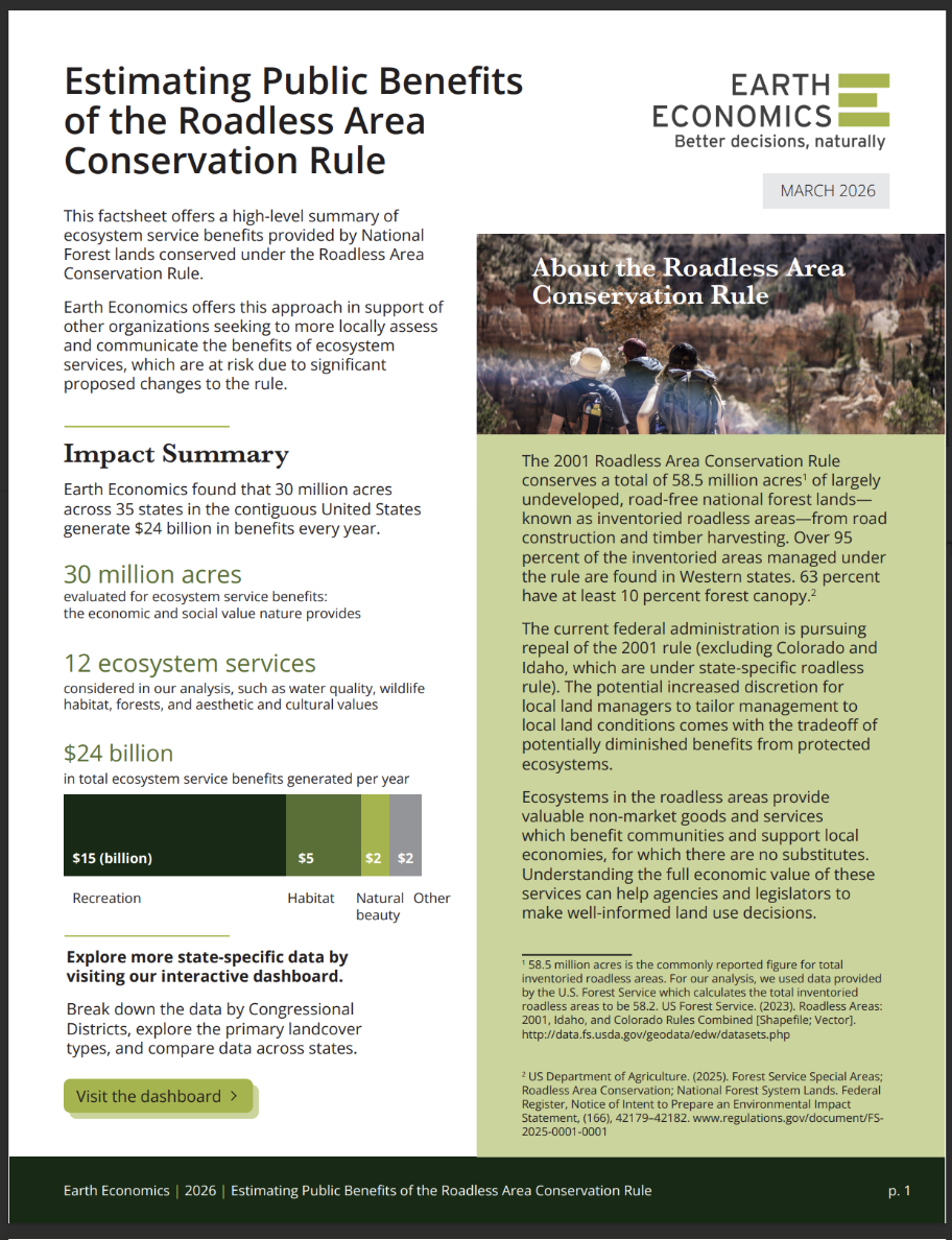 Get in touch to see how our analysis may be right for you. Send us a note at info@eartheconomics.org.